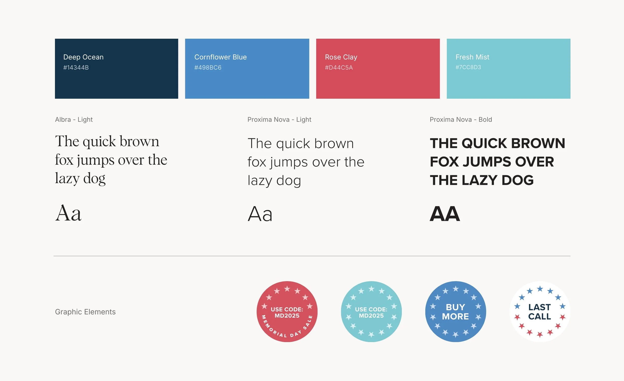 I developed the Memorial Day campaign design system, defining a cohesive visual framework across typography, color, layout, and graphic elements. The system delivered scalable imagery and consistent storytelling across web, email, and landing page touchpoints.